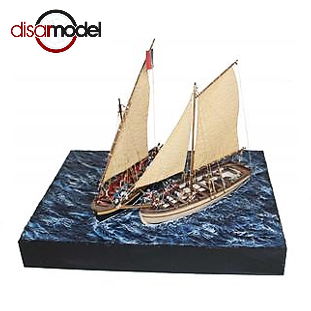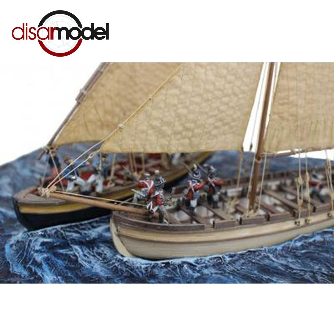 Kit de montaje en madera "Batalla del Nilo" con 2 embarcaciones y base. Largo: 400mm Alto: 320mm Ancho: 300mm Escala: 1/56 Nivel: Iniciados Se incluyen todas las componentes para la realización del Diorama , salvo: figuras y pinturas.