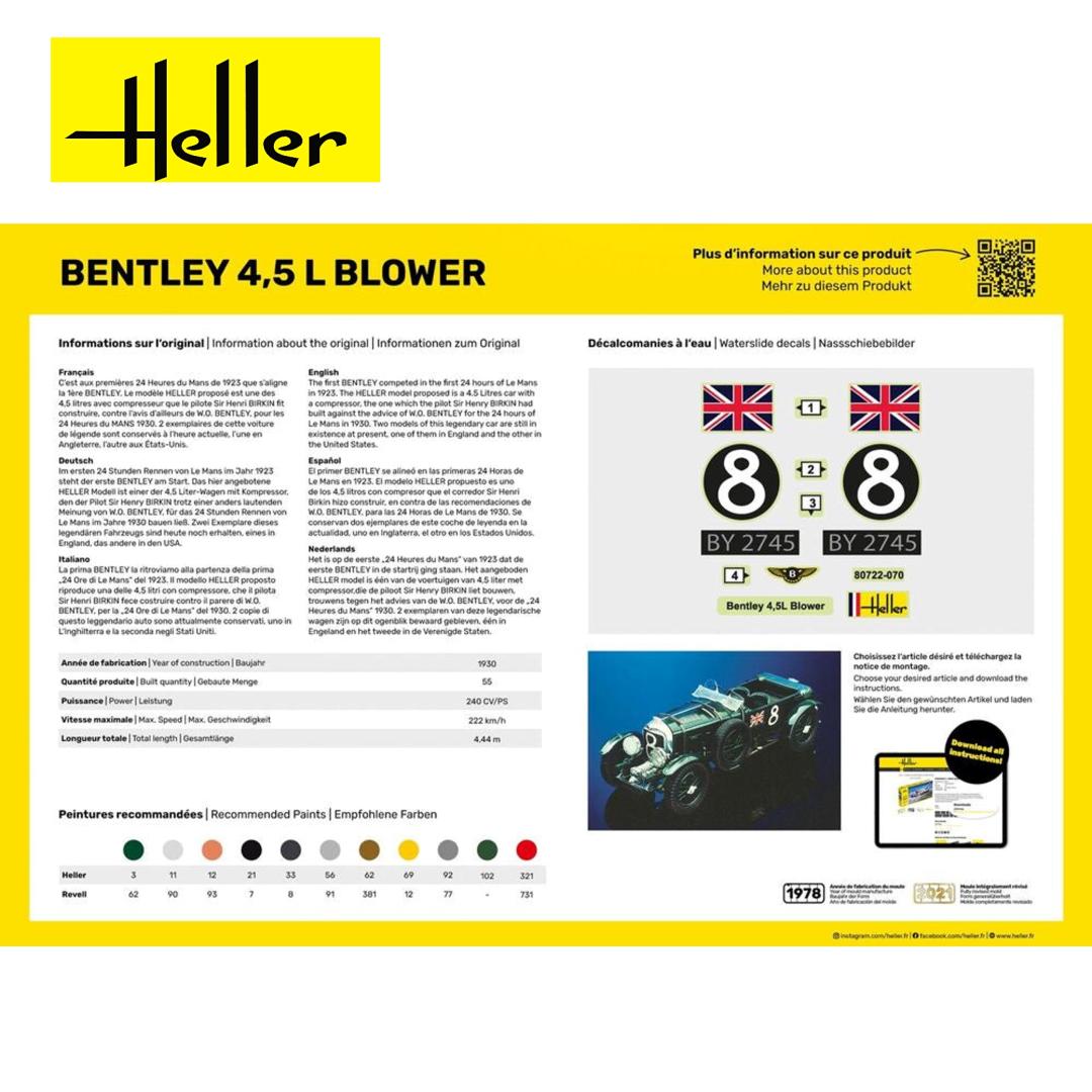El primer Bentley compitió en las primeras 24 Horas de Le Mans en 1923. El modelo Heller propuesto es un coche de 4,5 litros con compresor, el mismo que el piloto Sir Henry Birkin construyó en contra del consejo de W.O. Bentley para las 24 Horas de Le Mans de 1930. Dos modelos de este legendario coche aún existen en la actualidad, uno en Inglaterra y el otro en Estados Unidos.