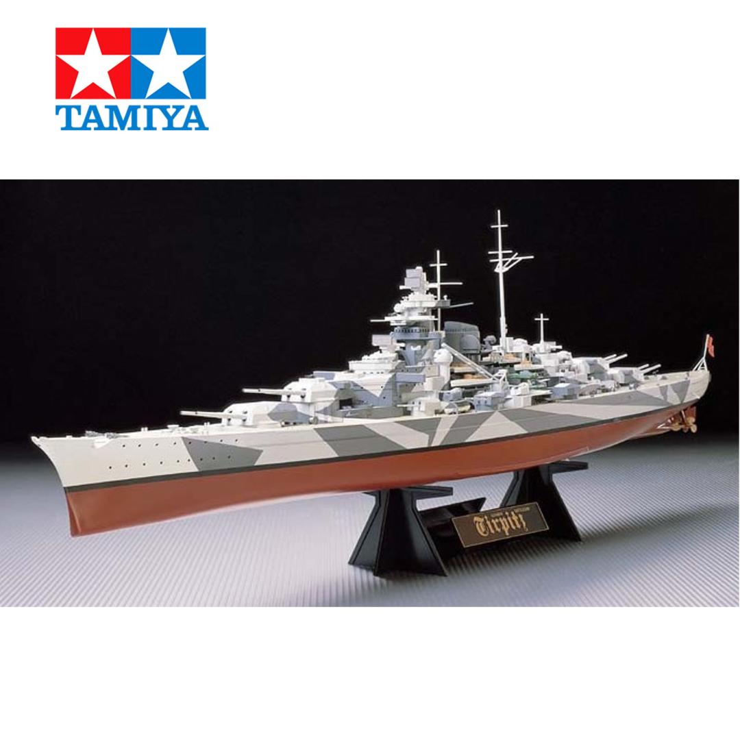 El Tirpitz, único buque gemelo del Bismarck, fue una preocupación constante para la Marina Real Británica, ya que su presencia en Noruega representaba una amenaza para los convoyes aliados. Se invirtieron considerables recursos para contrarrestar sus posibles movimientos hasta que finalmente fue hundido por bombarderos de la Real Fuerza Aérea. Tamiya ahora te trae esta maravilla de la ingeniería alemana en forma de maqueta a escala 1/350, con un alto nivel de detalle. Las elegantes líneas del Tirpitz se reproducen con precisión, y las características distintivas que lo diferenciaban del Bismarck, como los tubos lanzatorpedos cuádruples, también se recrean con gran detalle. La maqueta incluye una base de exhibición especialmente diseñada y una hermosa placa identificativa para una presentación impresionante.