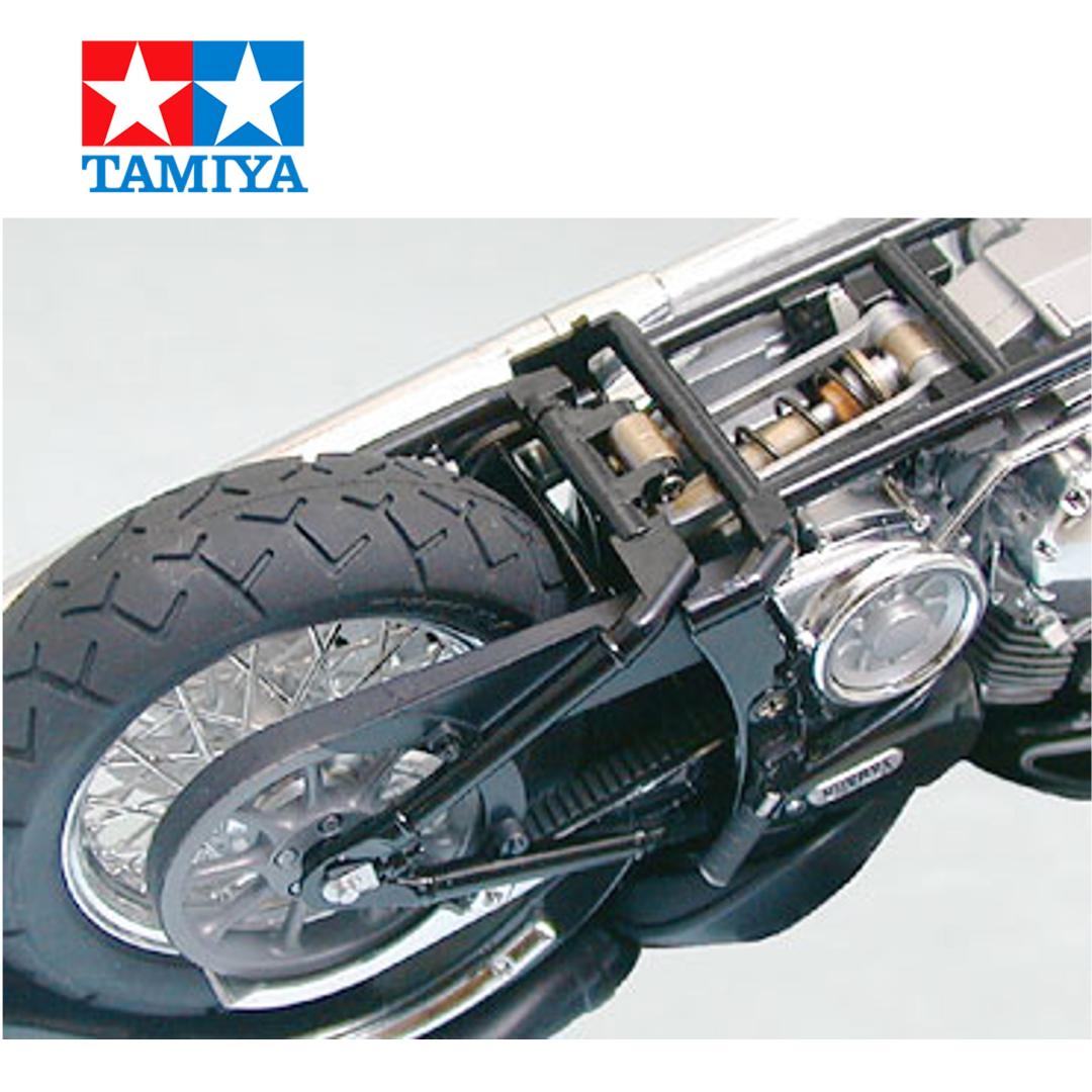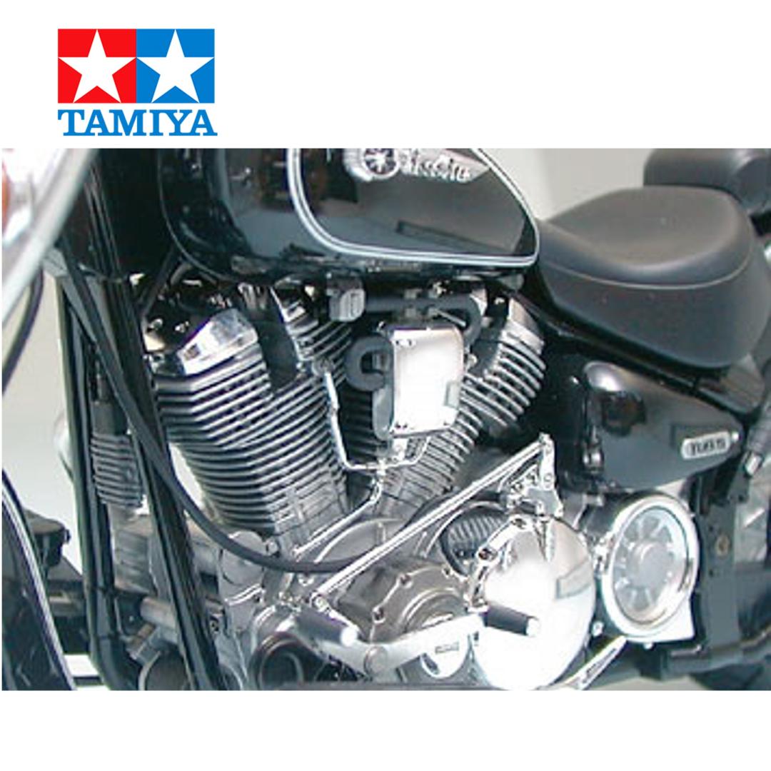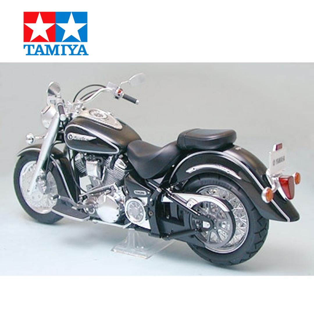 Tamiya ha recreado la Road Star con asombroso detalle como su última incorporación a la Serie de Motocicletas a Escala 1/12. Longitud total: 208 mm, anchura total: 89 mm, altura total: 100 mm. Disfrute del fascinante montaje, que incorpora tornillos auténticos y dos tipos de piezas chapadas en metal. Las delicadas aletas del motor refrigerado por aire, las llantas de radios y las esbeltas líneas de freno y embrague contribuyen al realismo de esta obra maestra de la motocicleta. El kit incluye dos tipos de emblemas para el depósito (uno para la "Road Star" japonesa y estadounidense y otro para la "Wild Star", como se la conoce en Europa). Este kit auténtico también incluye varias calcomanías para franjas y medidores. También incluye un soporte de exhibición transparente.