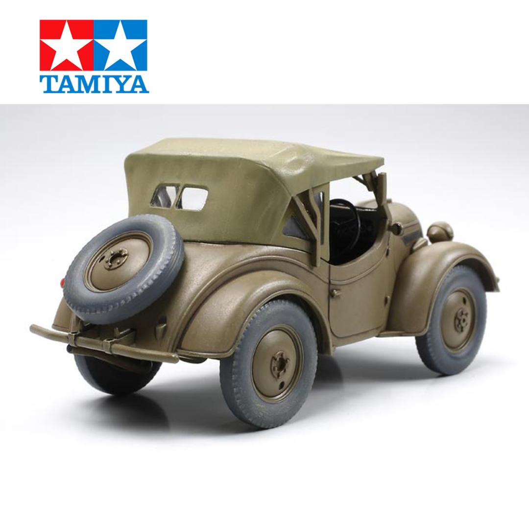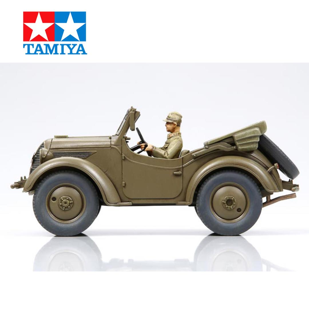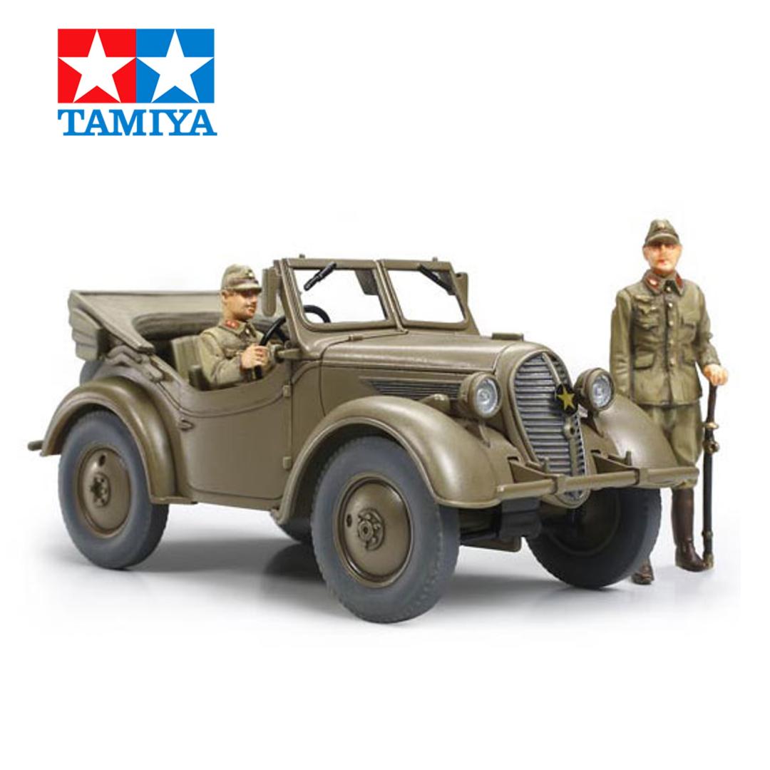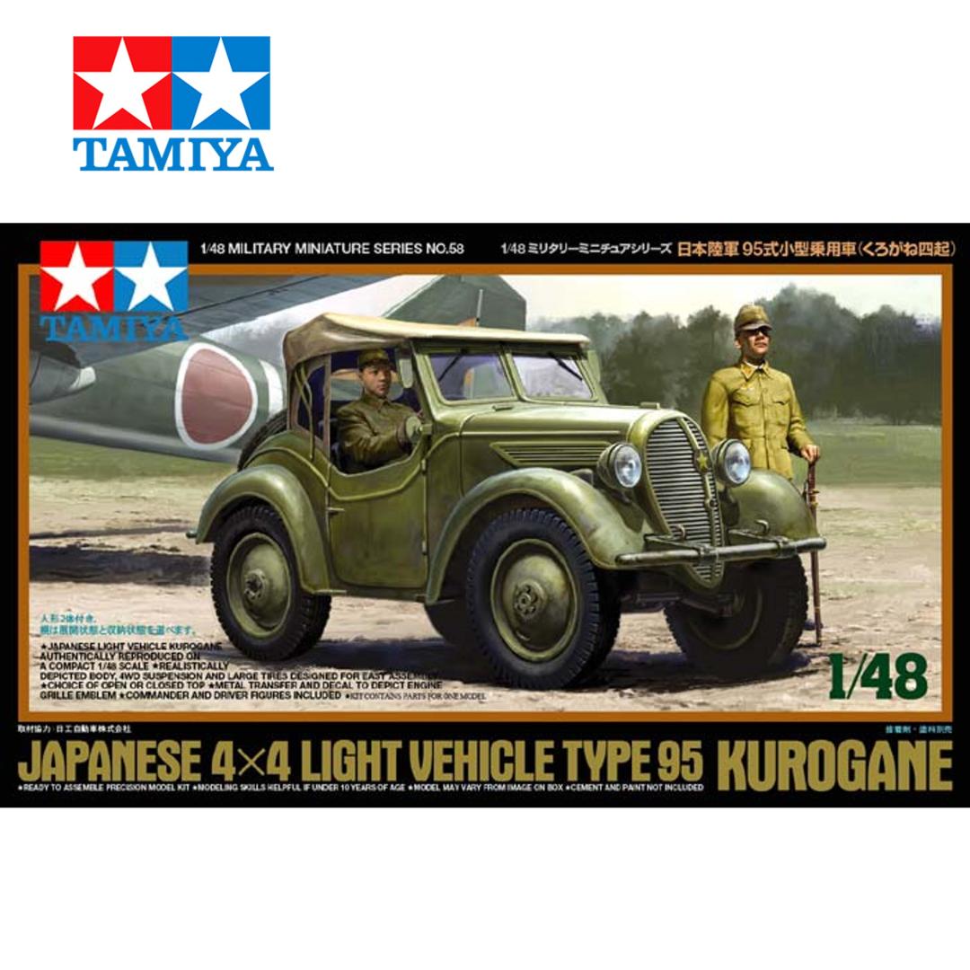 Este vehículo ligero 4x4 japonés, tipo 95 Kurogane, es un kit de ensamblaje de plástico. ★Longitud: 75 mm. Presenta un estilo individualista, redondeado y distintivo. ★Interior de 3 plazas, neumáticos grandes y piezas fáciles de ensamblar que le dan al modelo una sensación de solidez. ★Viene con capota convertible abierta y cerrada. ★El vehículo parece ensamblado con una estrella metálica transferida en la parrilla delantera. ★Viene con el oficial y el conductor de pie.