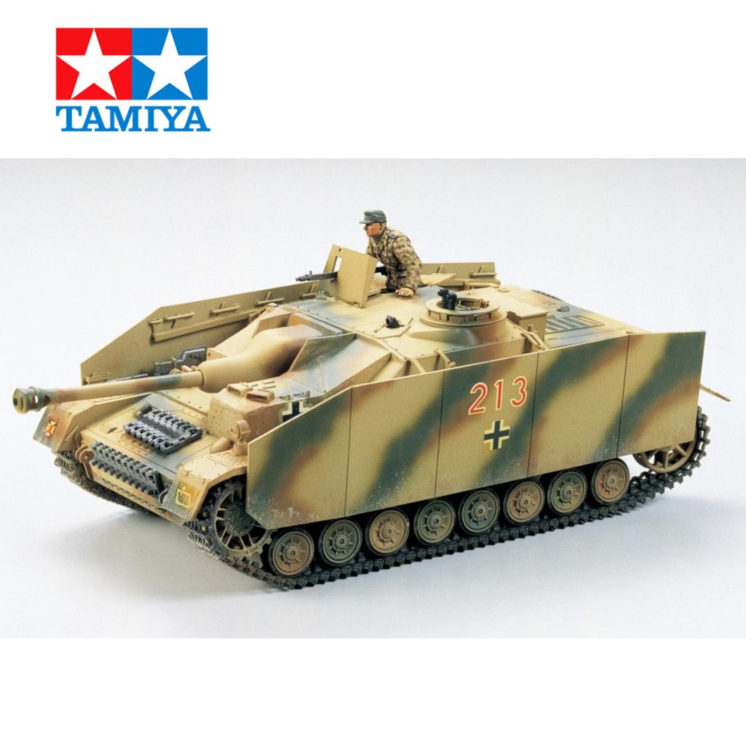 Este es un kit de ensamblaje de modelo de plástico a escala 1/35 que recrea el Sturmgeschötz IV equipado con un cañón de 75 mm desplegado por la Alemania nazi en la Segunda Guerra Mundial. ★ La poderosa forma del vehículo se captura con estilo. ★ Cuenta con un bloque de cemento frontal de casco opcional para reforzar el blindaje, además de piezas que recrean las placas de blindaje laterales de Schörzen. ★ Viene con una figura de comandante en pose de acción.