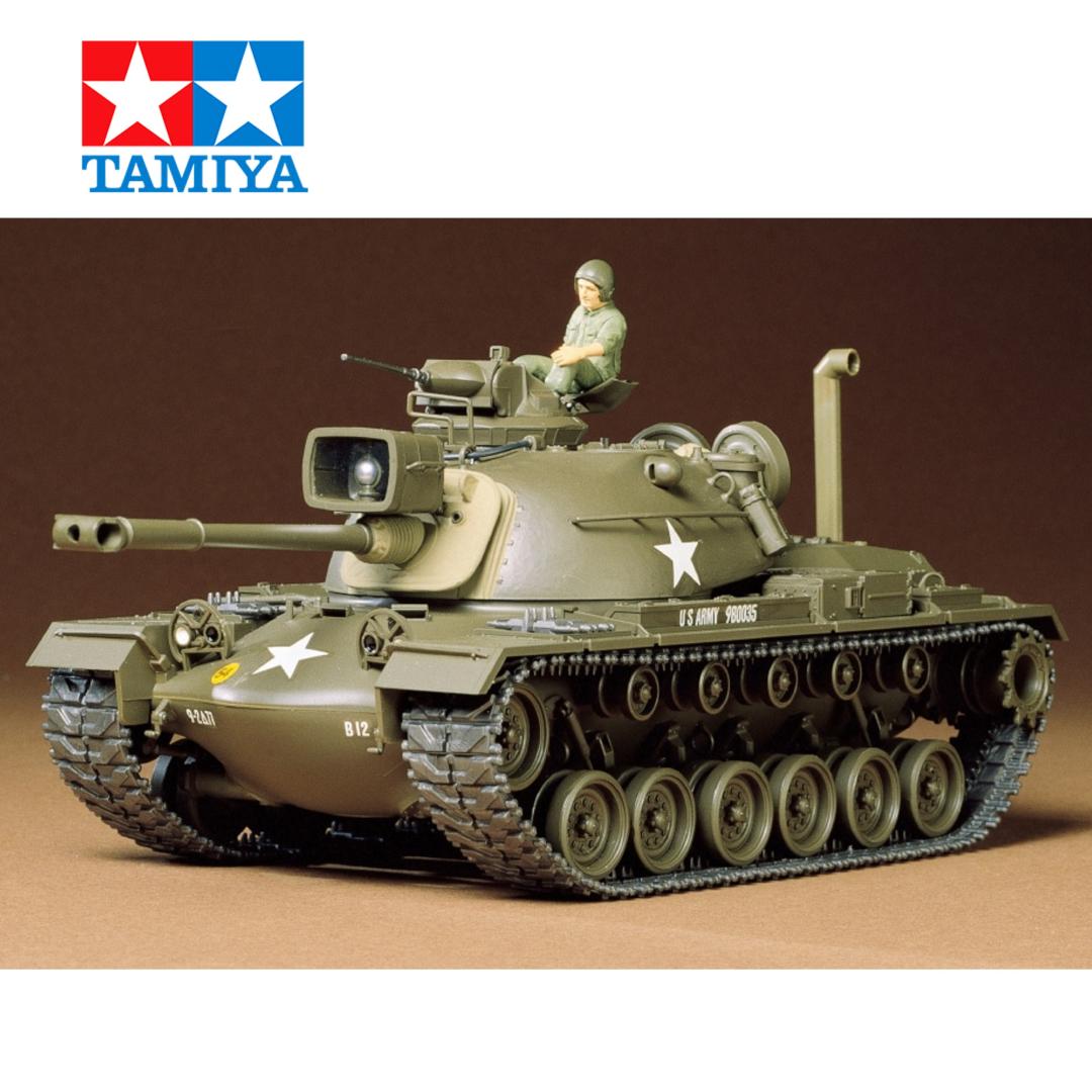 Esta es una maqueta de plástico a escala 1/35 del tanque estadounidense M48A3 Patton, que prestó servicio con distinción durante la Guerra de Vietnam. ★La robusta apariencia del tanque, incluyendo la textura de su superficie de metal fundido y la sección de lona del mantelete del cañón, se reproduce con precisión. ★Detalles como el reflector y la cúpula de la ametralladora también rebosan de realismo. ★El kit incluye accesorios como un tubo de escape del motor, bidones y eslabones de repuesto para las orugas, así como dos figuras de la tripulación del tanque