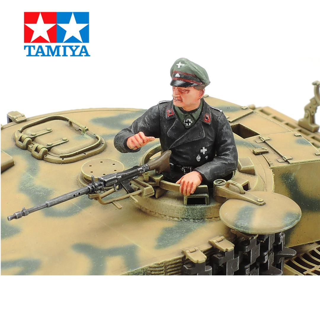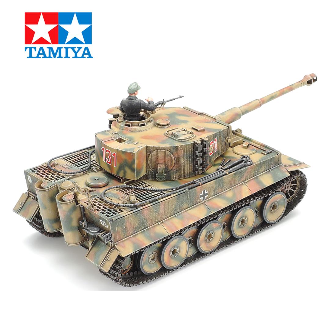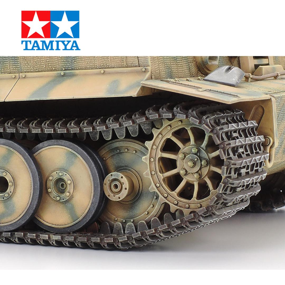 El tanque alemán Tiger I, con un potente cañón de 88 mm y un excelente blindaje, fue el mayor oponente de las fuerzas aliadas durante la Segunda Guerra Mundial. Este modelo de plástico a escala 1/35 representa la variante de producción intermedia, de la que se fabricaron 1354 unidades entre julio de 1942 y agosto de 1944. La silueta distintiva y las características de este modelo, como la suspensión mecánicamente compleja, la detallada escotilla del cargador y equipos como la pala, se han reproducido con gran realismo. El modelo cuenta con cadenas de montaje de tipo eslabón para realzar la escala.