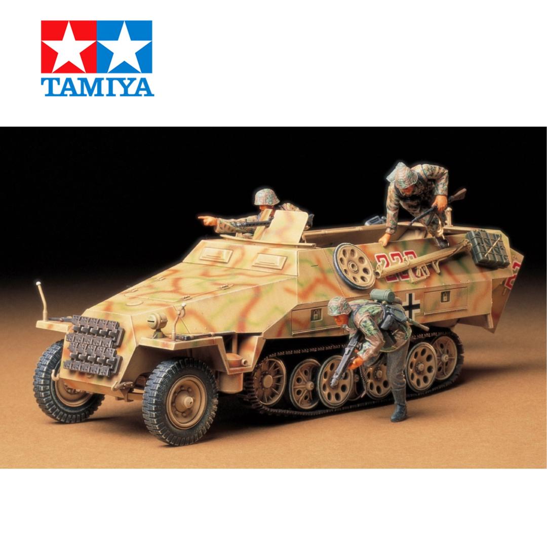 Durante la Segunda Guerra Mundial, las divisiones blindadas alemanas emplearon eficazmente los semiorugas Hanomag como transporte y apoyo. Entre sus numerosas variantes se encontraba el Sd.Kfz. 251/1 Ausf.D, que apareció por primera vez en 1943 y ahora se representa fielmente como una maqueta de plástico. Las características del Ausf.D, de estilo distintivo, como la cabina descapotable, los asientos y la radio inalámbrica, se han reproducido con gran realismo y detalle. La puerta trasera también puede representarse abierta o cerrada. El Ausf.D incluye cuatro figuras en poses dinámicas, como la del conductor mirando hacia atrás desde su asiento y la del comandante indicando la dirección del enemigo. Además, se incluyen armas como un Panzerfaust y una ametralladora MG42 para mayor realismo.