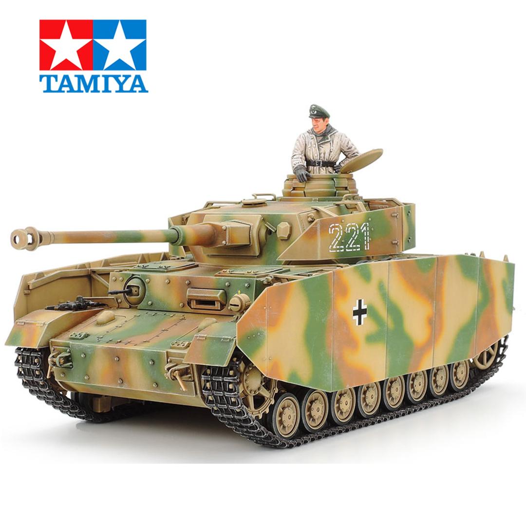 Durante la Segunda Guerra Mundial, el tanque más importante empleado por las fuerzas alemanas durante todo el conflicto, y también el más producido, fue el Pz.Kpfw.IV. Este es un kit de ensamblaje de plástico a escala 1/35 del Pz. Jpfw. IV Ausf.H Early Version alemán, considerado generalmente el modelo definitivo de los tanques Pz.Kpfw.IV. El modelo reproduce fielmente el tanque con su potente cañón de 75 mm de calibre 48 y los Schörzen que rodeaban los laterales y la torreta. El kit incluye dos tipos de placas frontales de casco y ruedas dentadas para permitir crear un modelo de diferentes fechas de producción. También se incluye una figura de un comandante de tanque con una chaqueta de invierno.