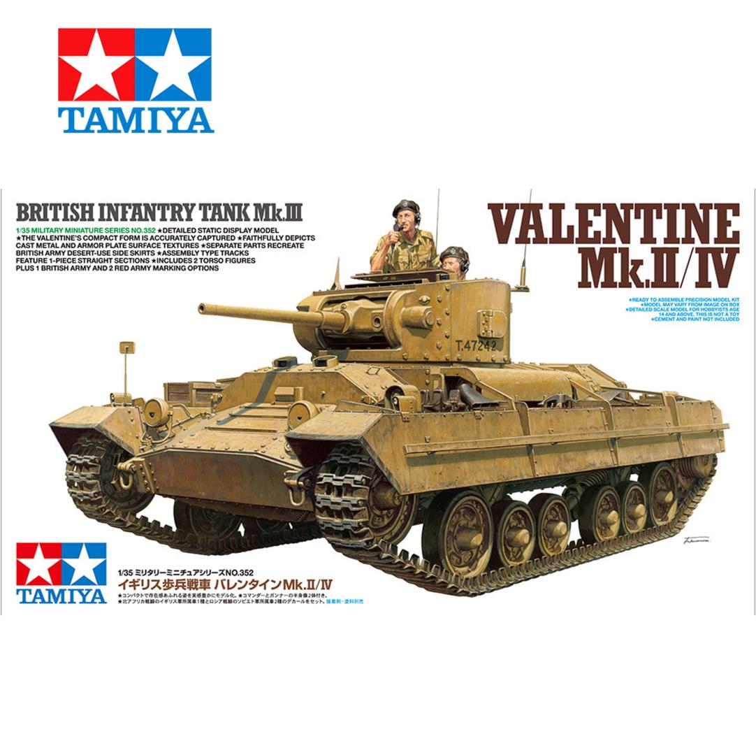 y compacto Valentine fue un tanque de infantería desplegado por primera vez en 1940 por las fuerzas británicas. Fue una grata incorporación para los británicos, que se vieron obligados a una evacuación desesperada de Dunkerque, durante la cual tuvieron que dejar atrás material valioso. Una producción total de más de 7000 unidades (producidas en Gran Bretaña y Canadá) convirtió al Valentine en el tanque británico de mayor producción durante la Segunda Guerra Mundial. La variante Mk.II/IV estaba equipada con el cañón de 40 mm y 2 libras, y contaba con un motor diésel de 130 hp, así como con un sistema de suspensión de resortes helicoidales de "cámara lenta" que le otorgaba amplia movilidad para su función de tanque de infantería. Debutó en noviembre de 1941 en el norte de África y aún prestaba servicio en Túnez en mayo de 1943. Los Valentines también fueron transferidos en cantidades significativas a la Unión Soviética bajo el programa de "préstamo y arriendo". Se utilizaron principalmente en misiones de reconocimiento.