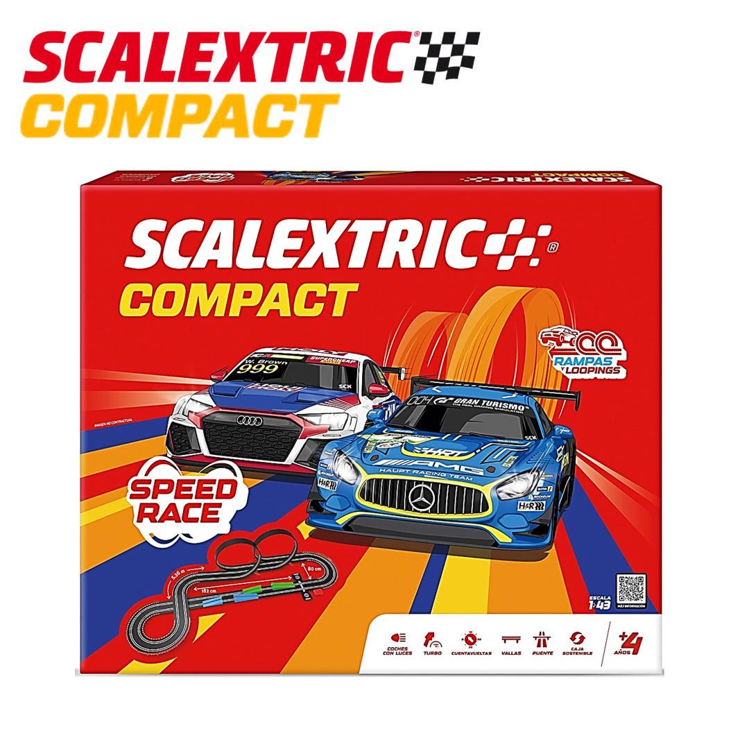 Speed Race Scalextric es el circuito perfecto para llevar la emoción de la competición al siguiente nivel. Con un trazado lleno de acción, incluye loopings, rampas de salto, cuentavueltas, puente y vallas, ofreciendo una experiencia realista y llena de adrenalina. Cada carrera se convierte en un auténtico desafío, donde la velocidad y la precisión marcan la diferencia.