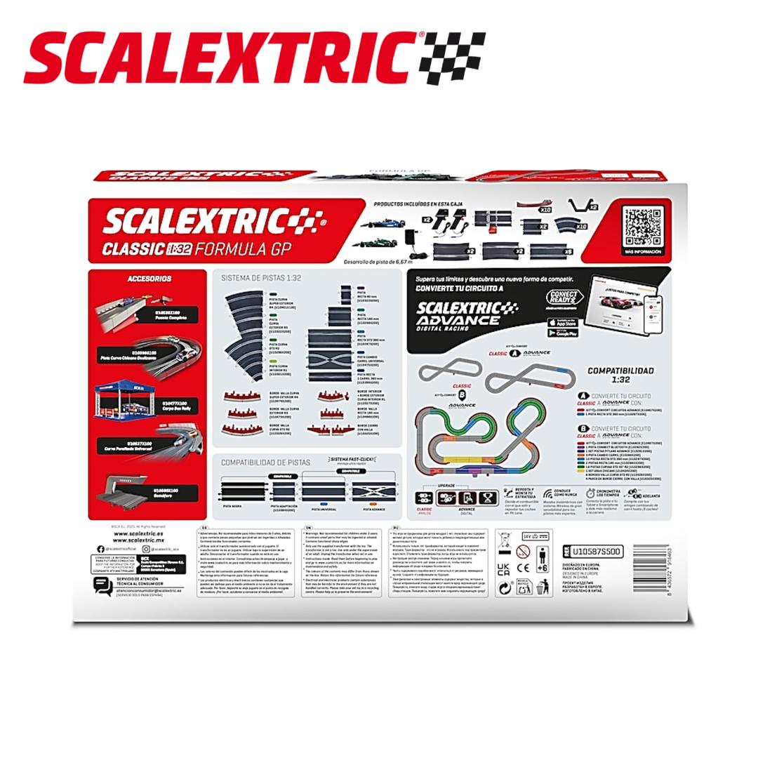 Perteneciente a la gama Scalextric Original (analógico), el circuito Formula GP está diseñado para ofrecer una experiencia de conducción rápida, fluida y accesible, ideal tanto para quienes se inician como para los amantes del slot más clásico.