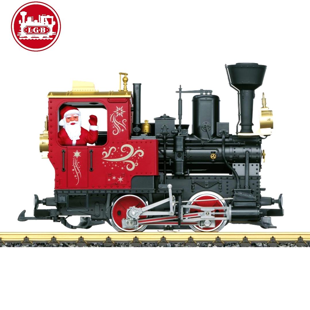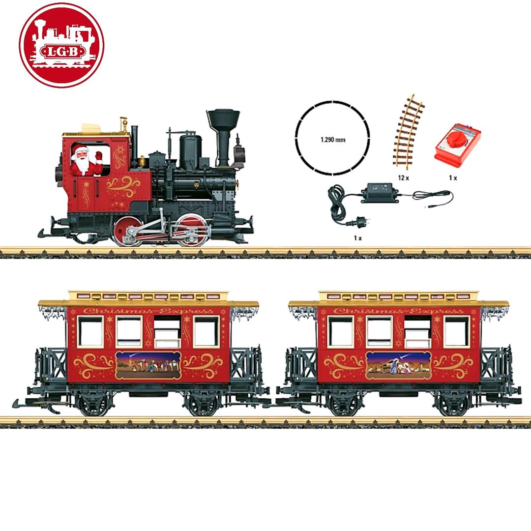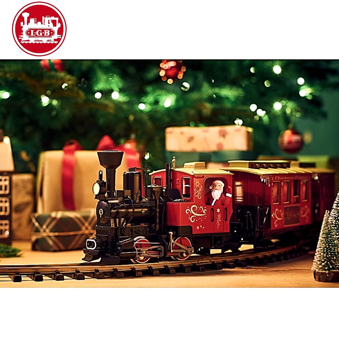 Este set de iniciación contiene un tren antiguo compuesto por una locomotora y 2 vagones de pasajeros con temática navideña. La locomotora está equipada con un potente motor Bühler con rodamiento de bolas, así como con luces delanteras y equipo de producción de humo.