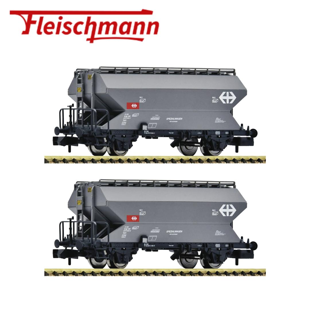 Juego de vagones con dos vagones silo de grano tipo Tgpps de los Ferrocarriles Federales Suizos.