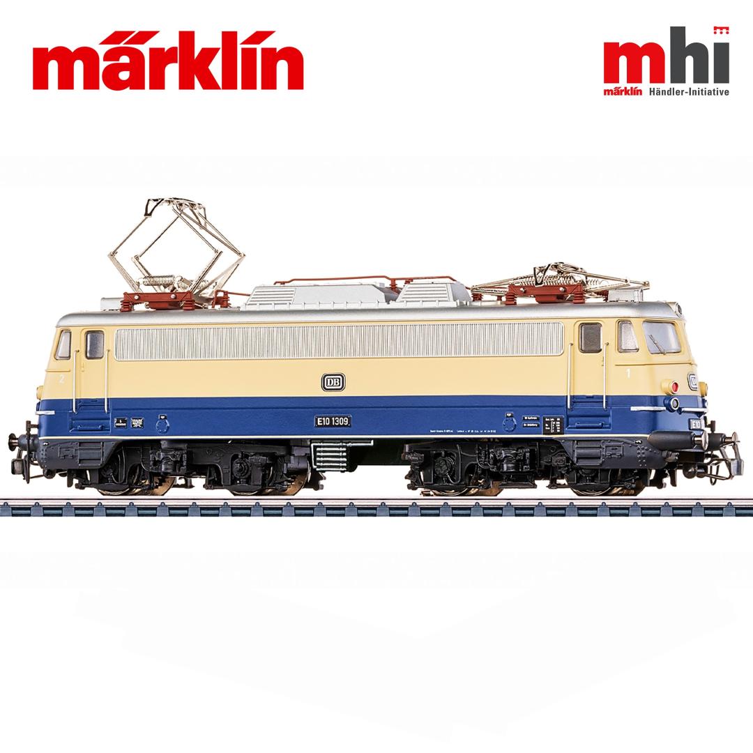 Prototipo: Locomotora eléctrica de la clase E10.12 de la compañía ferroviaria alemana DB, modelo "Bügelfalte" / "Pliegue de pantalón". Esquema de pintura básico azul cobalto/beige, como las locomotoras de Rheingold. Versión con cinco faros en los extremos, bandas de ventilación continuas con extremos redondeados, canaletas de lluvia continuas y revestimiento y faldón de los topes. Número de serie de la locomotora: E10 1309. La locomotora luce como alrededor de 1963.
