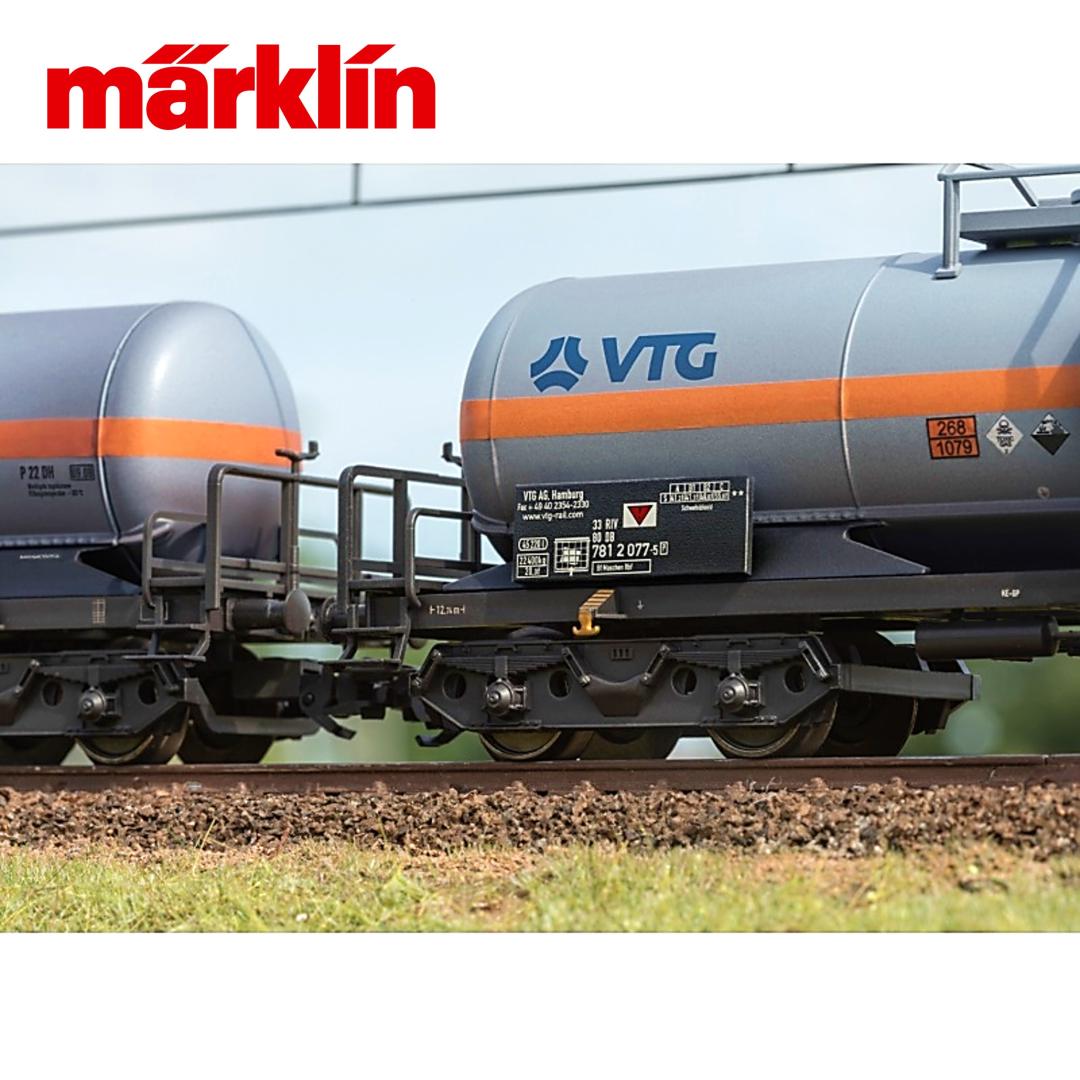 Prototipo: Cinco vagones cisterna de gas cloro para VTG United Tank Farm and Transportation, Inc., Hamburgo, Alemania, utilizados en German Railroad, Inc. Esquema de pintura básica gris plata. Los vagones lucen igual que a partir de 2004.