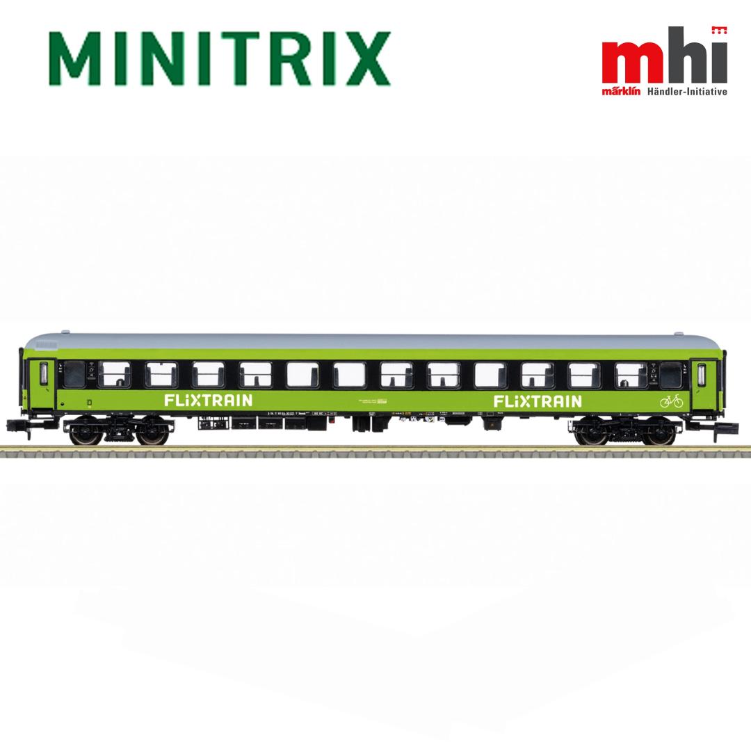 Prototipo: Vagón de tren expreso de segunda clase, tipo Bmmdz 268.7F. Color verde claro. Vagón privado de Trainpool GmbH & Co. KG, arrendado a Flixtrain GmbH, Múnich. Estado de funcionamiento: alrededor de 2020.