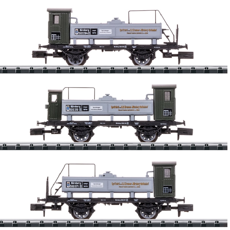 Prototipo: 3 vagones para bebidas de propiedad privada (1 de ellos con garita de frenos), utilizados en los Ferrocarriles Reales del Estado de Baviera (K.Bay.Sts.B.).