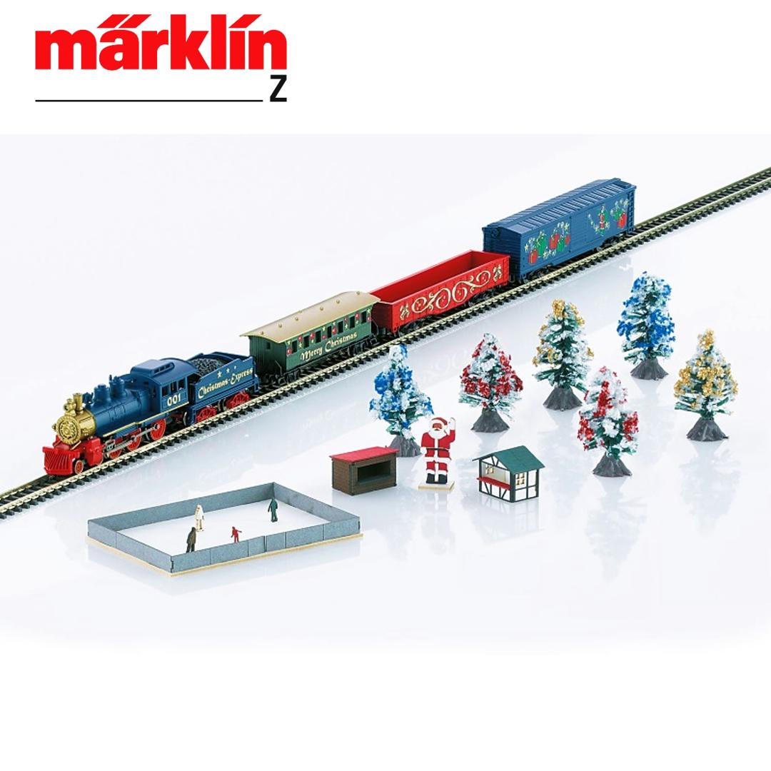 Modelo: La locomotora está construida en metal. Tanto la locomotora como el ténder están decorados para Navidad. Cuenta con un motor de 5 polos y todos los ejes motrices están accionados. Los tres vagones también están decorados con motivos navideños. Se incluyen tres árboles de Navidad decorados y kits para "Puestos de Navidad", "Papá Noel" y "Pista de Patinaje", que se pueden ensamblar para crear un pequeño mercado navideño de invierno. Los puestos también se pueden transportar en el vagón góndola alto si es necesario. Este set también incluye: dos vías rectas, diez vías curvas, un encarrilador y una fuente de alimentación conmutada de 230 voltios/12 VA con un controlador de velocidad. Incluido un folleto con el plano de las vías.