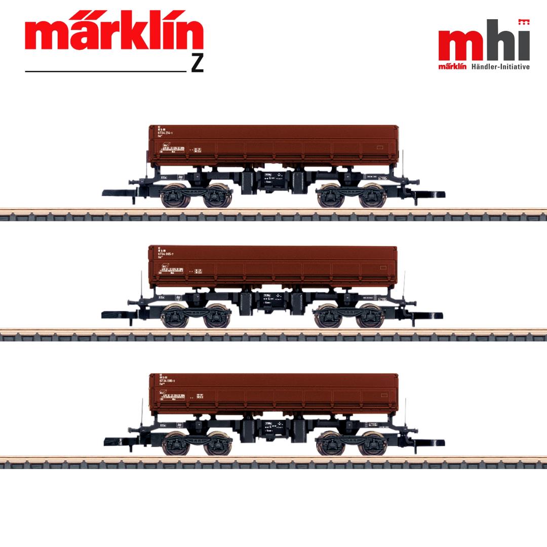 Prototipo: 3 vagones volquete de cuatro ejes tipo Fas 126 de la Deutsche Bahn (DB AG), tal como eran en la Era VI.
