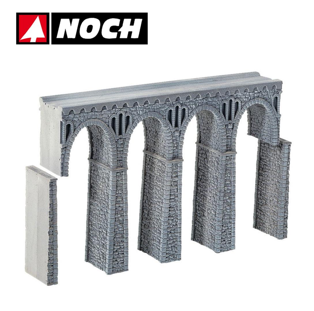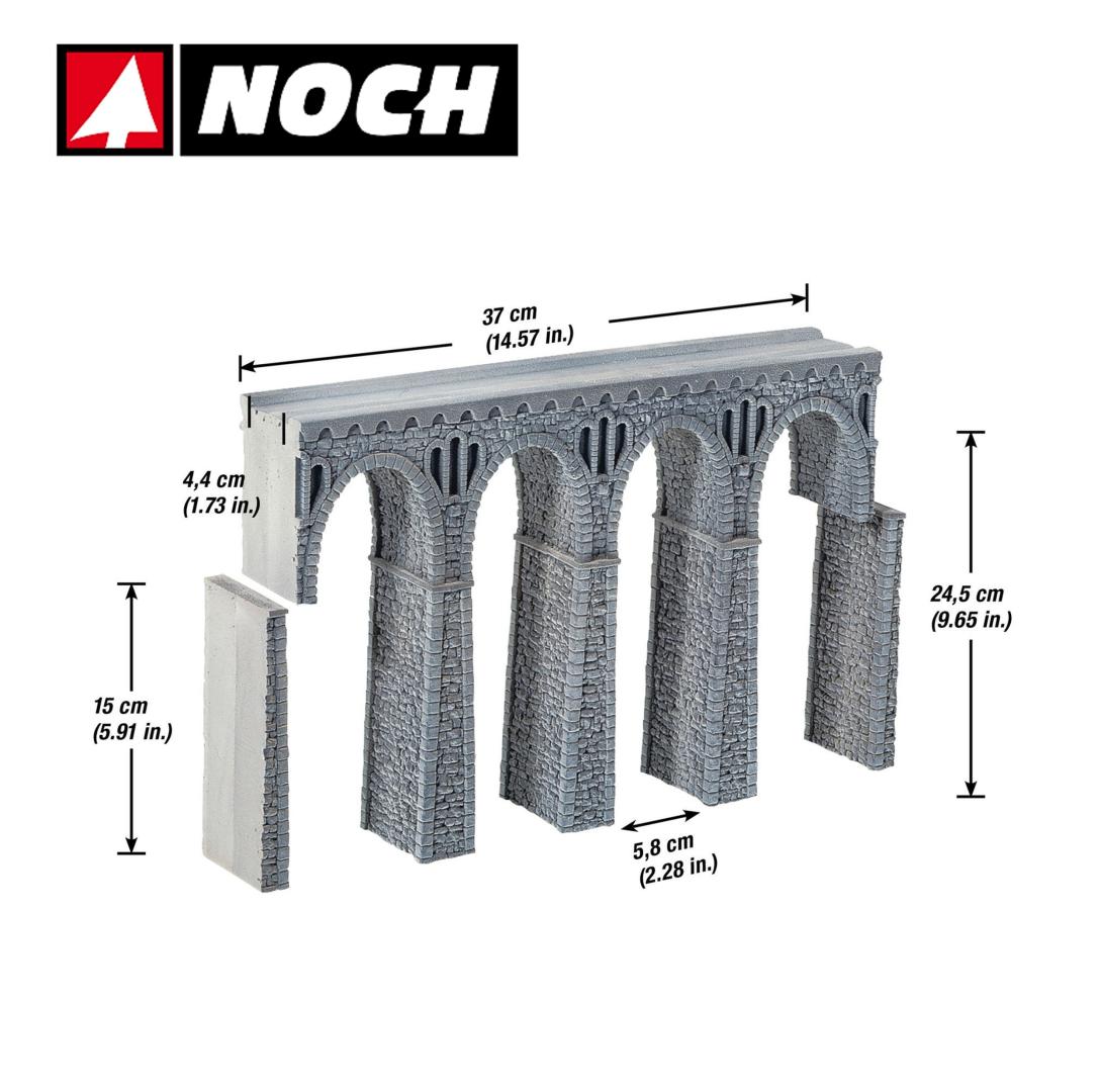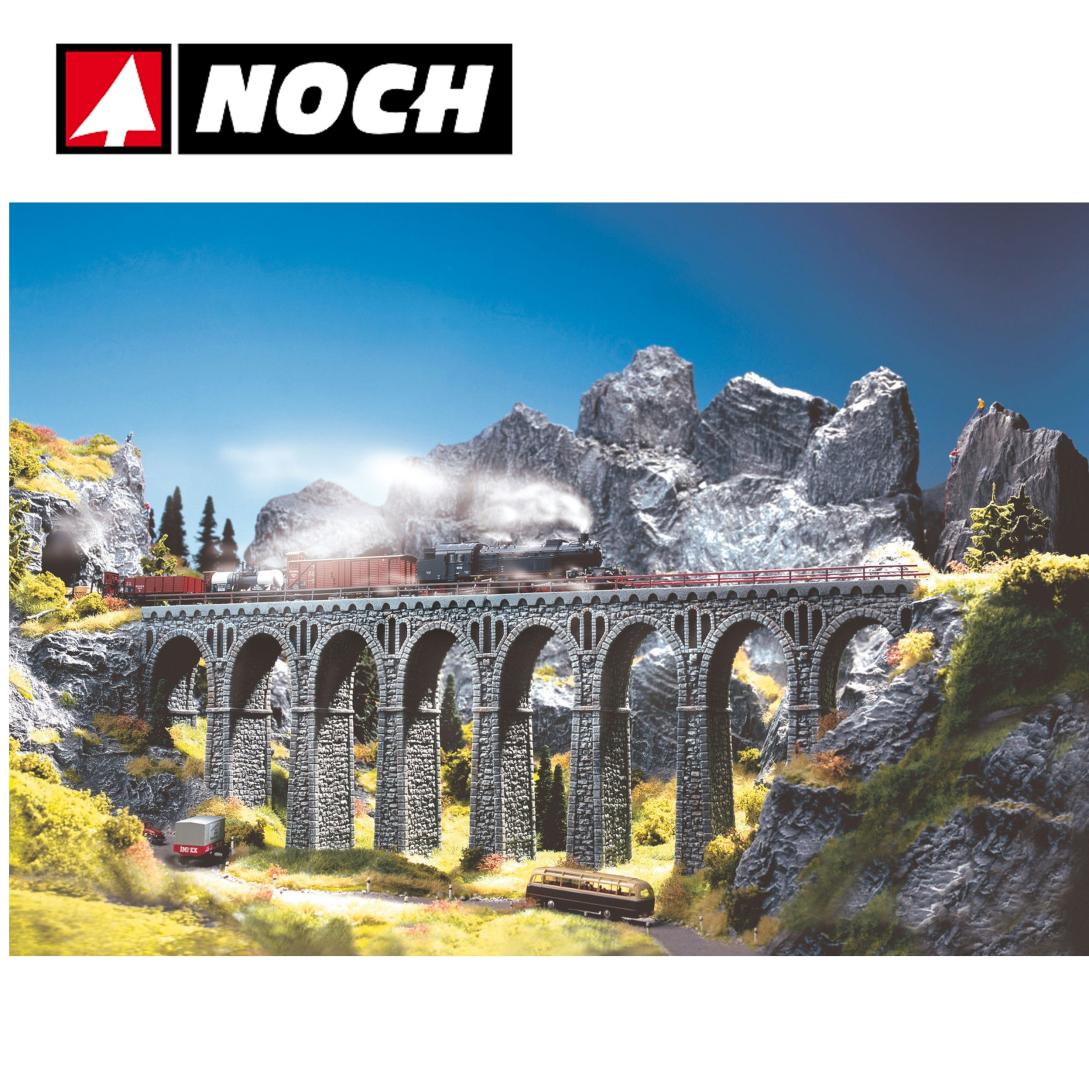 El "Viaducto de Cantera" será el centro de atención de tu diorama de modelismo ferroviario. Para crear puentes especialmente largos, puedes combinar viaductos de cantera rectos y curvos a tu gusto. También puedes combinarlo con el Viaducto del Ródano. El kit incluye el viaducto y el material necesario para construir una cabeza de puente adecuada.