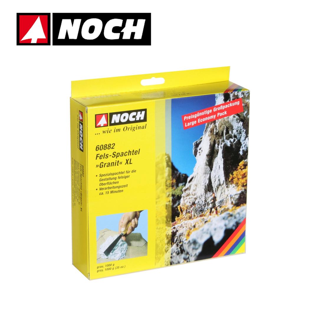 El compuesto de roca «Granito» es un relleno de alta calidad especialmente desarrollado para el diseño realista de zonas rocosas en maquetas de trenes y dioramas. El compuesto de 400 g ya viene coloreado en gris granito y, una vez seco, crea una superficie de aspecto rocoso. El relleno es fácil de usar: tras mezclarlo con agua, se aplica con una espátula. Esto crea un paisaje rocoso natural y texturizado, que se puede realzar aún más añadiendo rocas de espuma rígida o losas de roca.