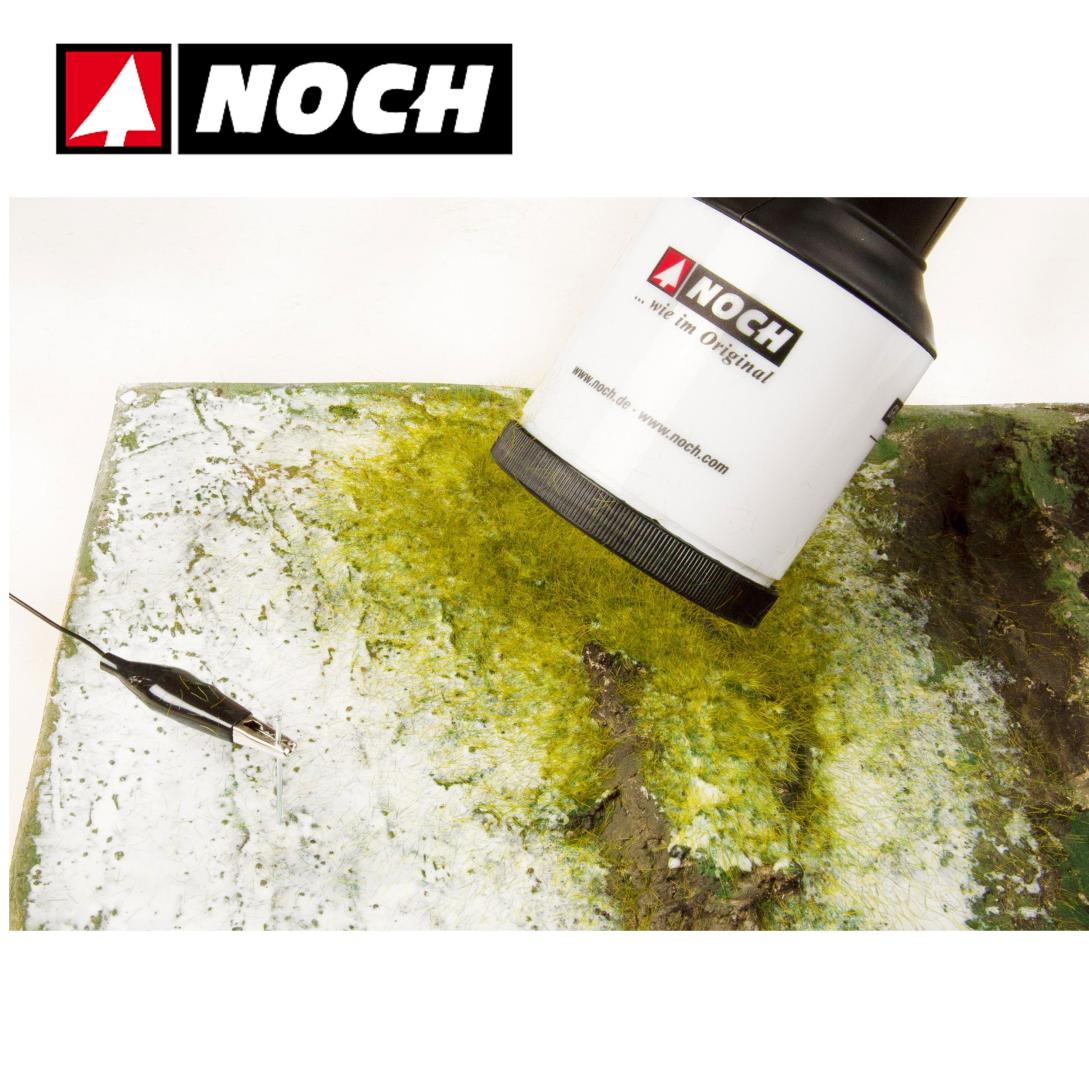 La fibra de césped corta de 1,5 mm es ideal para anchos de vía N y Z, así como para céspedes H0 cortos. Gracias a la amplia selección de tonos de color, se pueden lograr efectos extremadamente realistas. Las fibras de césped se pueden flocar electrostáticamente tanto con la Botella Inyectora como con el Gras-Master.