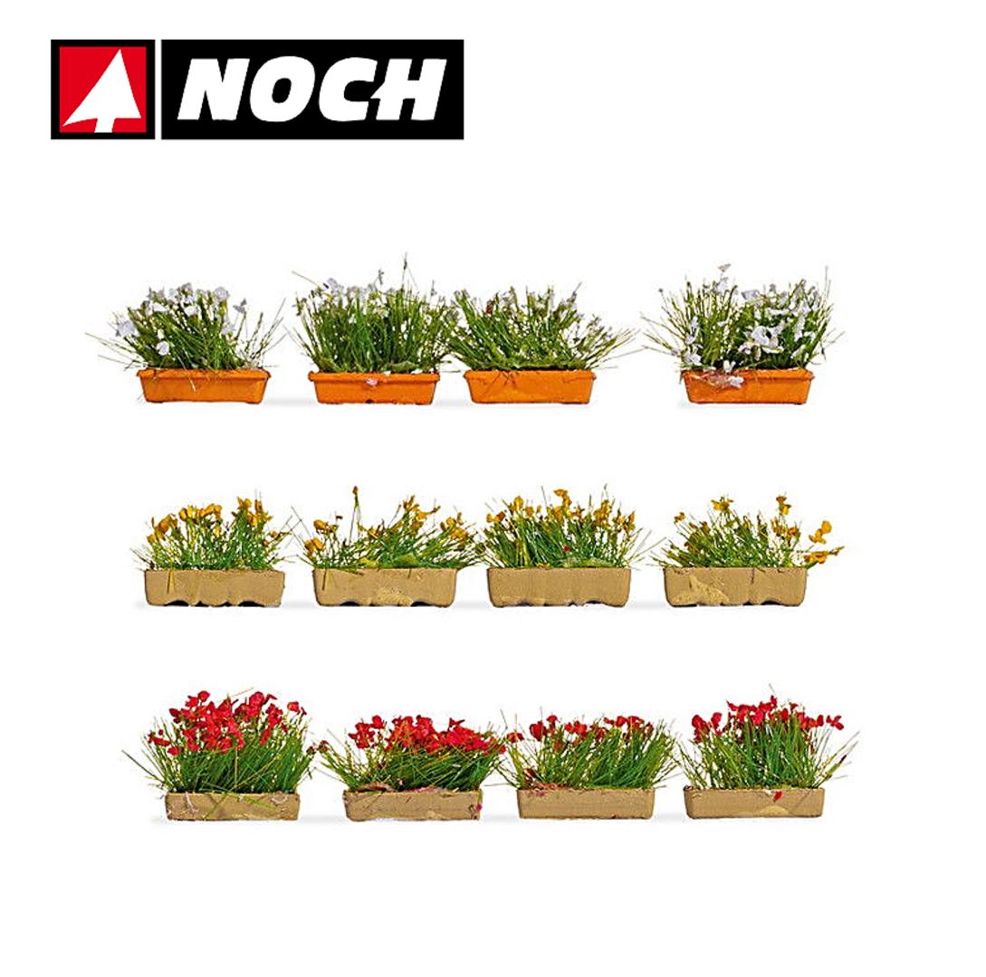 El set "Jardines" en escala H0, con flores rojas, blancas y amarillas, contiene 12 jardineras decoradas con plantas rojas, blancas y amarillas. Son ideales para decorar fachadas de casas, balcones y jardines en maquetas de trenes con gran detalle y dándoles más vida. Los jardineras pintados a mano aportan a la escena un ambiente realista y colorido, y no deberían faltar en ningún paisaje de maqueta.