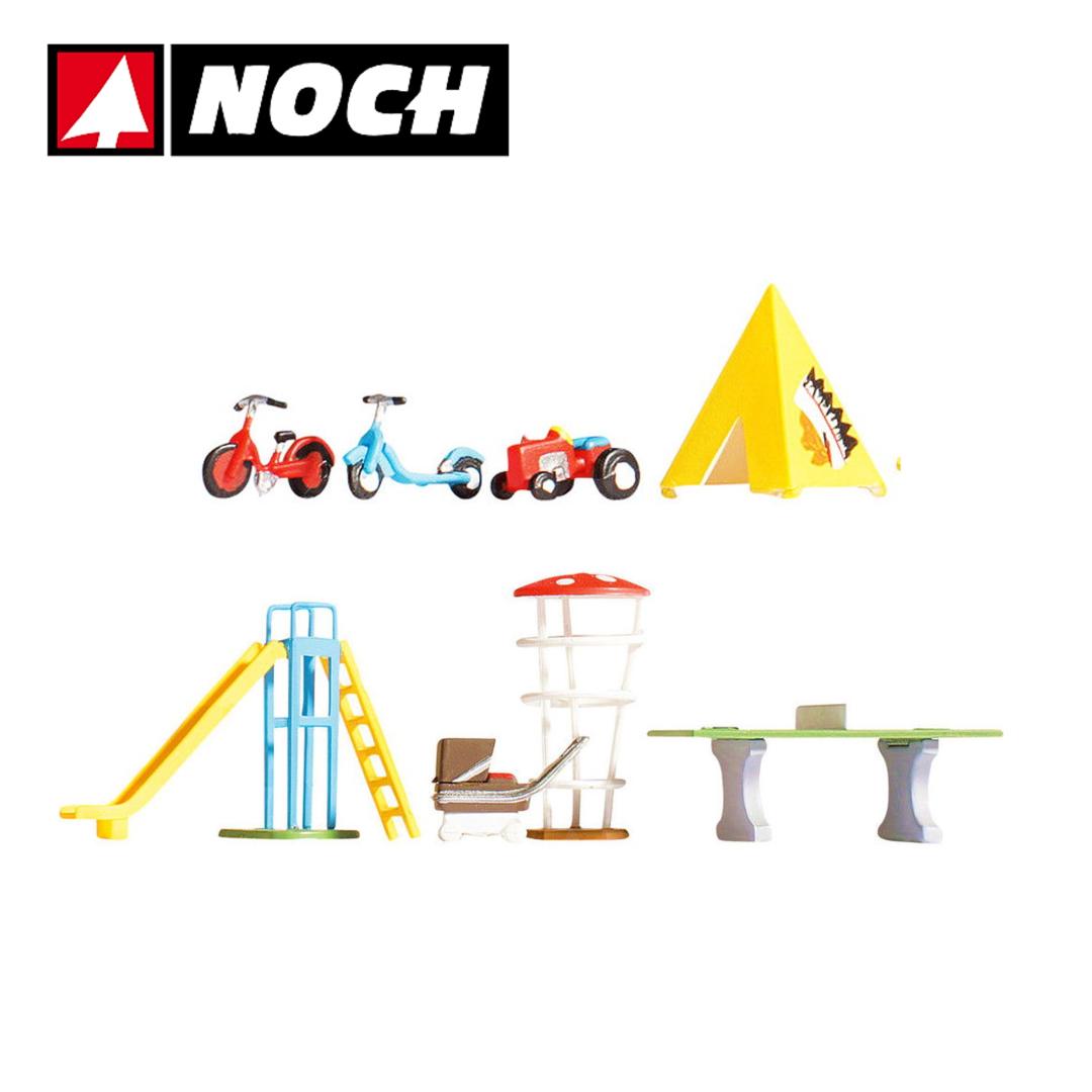 Quienes valoran el diseño realista de escenarios temáticos encontrarán una gran variedad de ideas en la gama de productos NOCH: desde una heladería hasta una gasolinera, desde lápidas hasta accesorios para escenas de playa. Cada set contiene una variedad de accesorios pintados a mano, todos a juego con el tema correspondiente.
