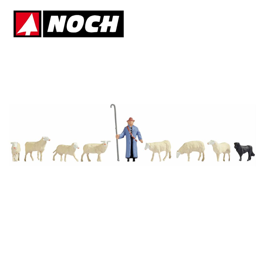 Con el set de figuras NOCH "Oveja y Pastor" (artículo n.° 15748), puedes dar vida rural a tu paisaje de maqueta con todo lujo de detalles. El set a escala 1:87 (escala H0) incluye siete ovejas cuidadosamente diseñadas, un pastor con su cayado tradicional y un fiel perro pastor. Las poses realistas de los animales —de pie, pastando o descansando— confieren al paisaje un aspecto vivo y auténtico.