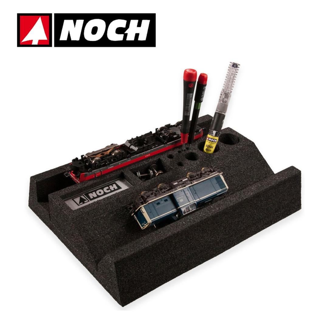 Desarrolladas por profesionales para profesionales, esto se refleja en los numerosos detalles de estas "Bandejas de Espuma para Servicio de Trenes". La "Bandeja de Espuma PROFI para Servicio de Trenes" consta de dos huecos para sus locomotoras. En uno de ellos, la locomotora se puede sujetar boca abajo en la espuma blanda. Ahora es fácil inspeccionarla desde abajo, y los engranajes y ejes se pueden engrasar fácilmente.